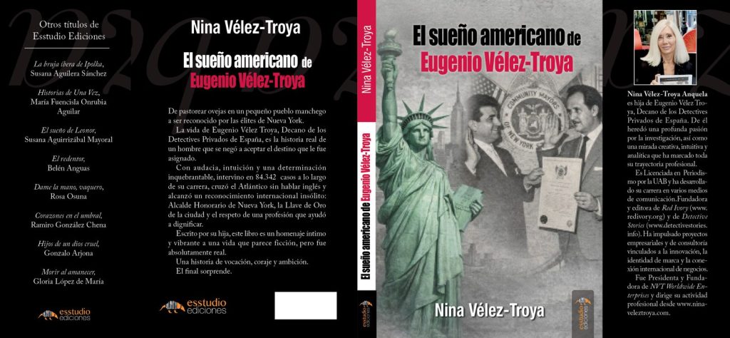 Me llamo Nina Vélez-Troya y soy hija de Eugenio Vélez Troya, Decano de los Detectives Privados de España. De él -con quien tuve la suerte de trabajar en su despacho-, heredé su pasión, su creatividad, perspicacia e intuición. Sin duda, el mejor legado que me podría dejar.